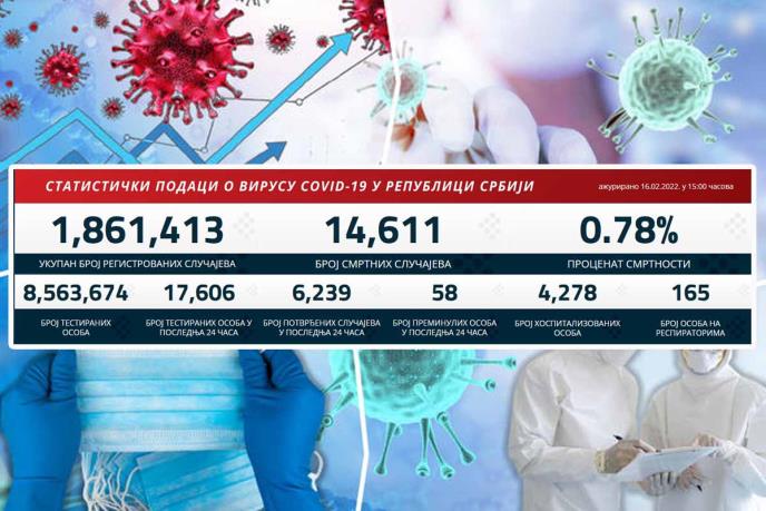 Preminulo je 58 pacijenata, a na respiratorima u bolnicama širom Srbije nalazi se 165 obolelih.