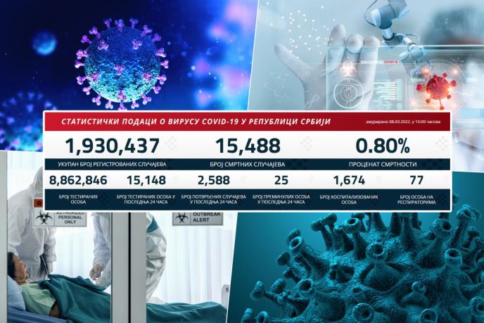 Preminulo je 25 pacijenata, na respiratorima u bolnicama širom Srbije je 77 obolelih.