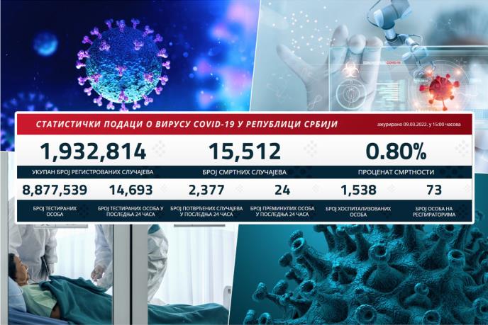 Preminulo je 24 pacijenata, na respiratorima u bolnicama širom Srbije je 73 obolelih.