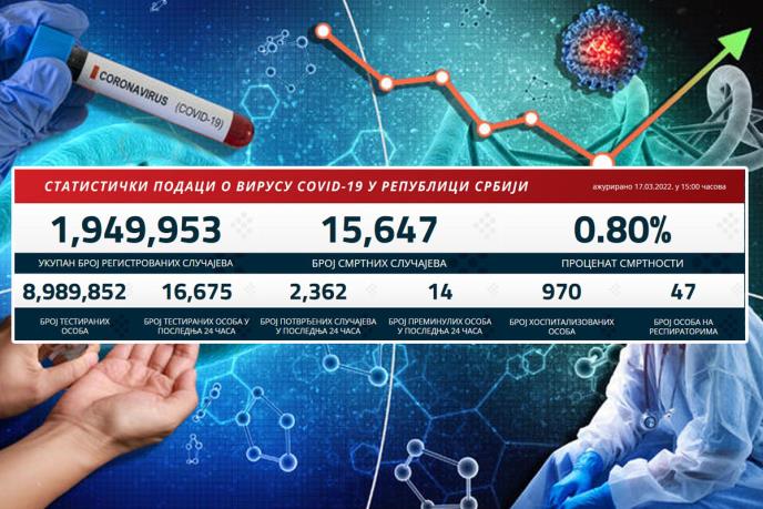 U prethodnih 24 sata u Srbiji je na korona virus testirano 16.675 građana od kojih je 2.362 novozaraženih.