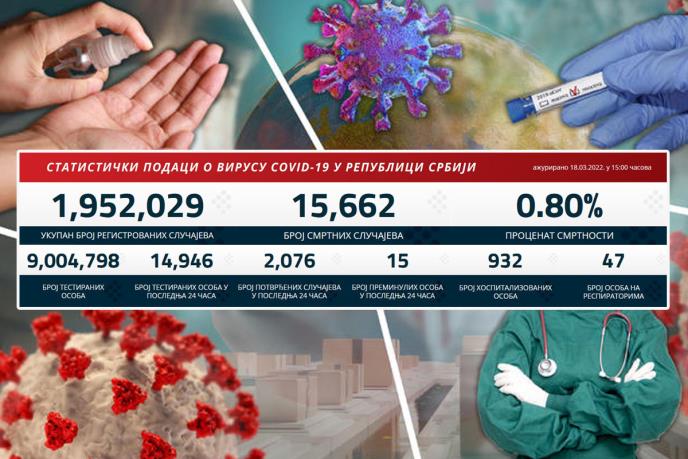 U prethodnih 24 sata u Srbiji je na korona virus testirano 14.946 građana od kojih je 2.076 novozaraženih.