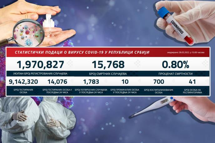 U prethodna 24 sata u Srbiji je na korona virus testirano 14.076 građana od kojih je 1.783 novozaraženih.