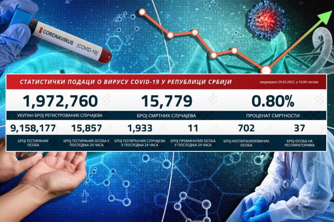 U prethodna 24 sata u Srbiji je na korona virus testirano 15.857 građana od kojih je 1.933 novozaraženih.