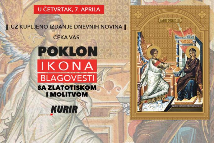 U dnevnim novinama Kurir sutra vas čeka poklon - ikona Blagovesti sa zlatotiskom i molitvom na poleđini.