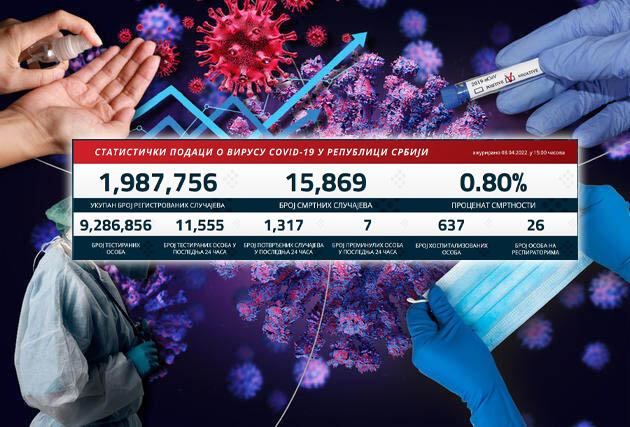 U prethodna 24 sata u Srbiji je na korona virus testirano 11.555 građana od kojih je 1.317 novozaražen.