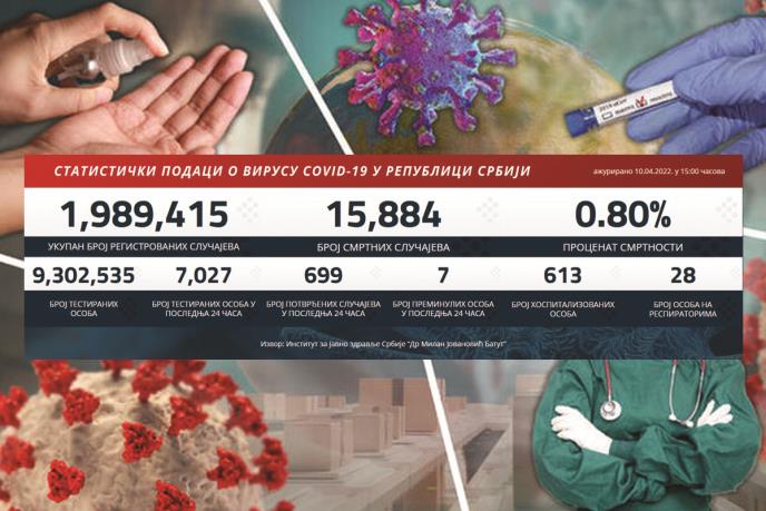 U prethodna 24 sata u Srbiji je na korona virus testirano 7.027 građana od kojih je 699 novozaražen.