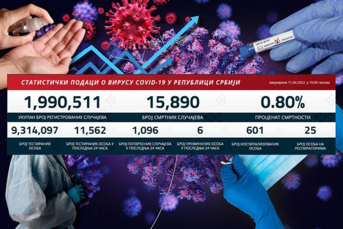 U prethodna 24 sata u Srbiji je na korona virus testirano 11.562 građana od kojih je 1.096 novozaražen.