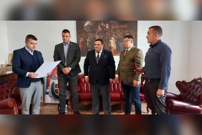Orden mu je uručio predsednik Organizacionog odbora za povratak posmrtnih ostataka vožda Đorđa Stratimirovića u otadžbinu, poslanik, Aleksandar Đurđev.