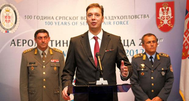 Vicepremijer Srbije i ministar odbrane Aleksandar Vučić sinoć je priredio svečani prijem u Palati Srbija povodom 100. godišnjice srpskog vojnog vazduhoplovstva i današnjeg aero-mitinga Batajnica 2012. Svečanom događaju prisustvovali su predsednik Republike Srbije Tomislav Nikolić, premijer Ivica Dačić, predsednik Skupštine Beograda Aleksandar Antić, direktor RTS Aleksandar Tijanić, članovi Vlade, predstavnici diplomatskog kora, piloti, kao i brojni drugi gosti.