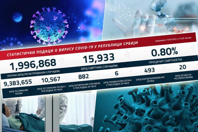 BEOGRAD - U prethodnih 24 sata u Srbiji je na korona virus testirano 10.567 građana od kojih je 882 novozaraženih.