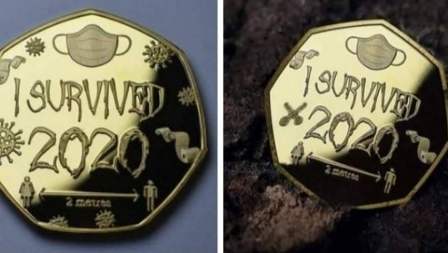 Na jednoj strani ugravirano je na engleskom napisano "preživeh 2020", dok se na drugoj strani zlatnika nalazi lik sa gas maskom i natpis "FUCK COVID-19", u prevodu "Je....š kovid 19".