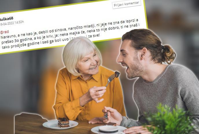 - Debili od sinova, naročito mlađi, ni jaje ne zna da isprži a prešao 30 godina, a ko je kriv, ja!... Neka majka će, neka to nije dobro, ti ne znaš i tako prođoše godine i sad ga boli uvo i za sobu i za sve!, napisala je čitateljka priznavši što bi retko koja majka u Srbiji.