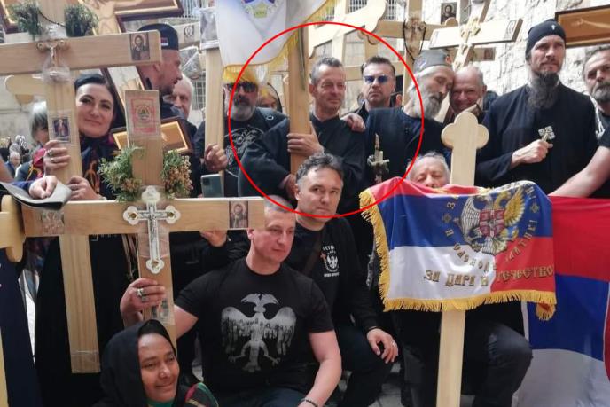 Nekadašnji kapetan grčke ratne mornarice Marinos Ricudis, koji je tokom 1999. godine odbio naređenje da učestvuje u bombardovanju Srbije, uslikan je u Jerusalimu kako tokom krsnog hoda nosi krstove zajedno sa srpskim državljanima čuvenom Ulicom Stradanja.