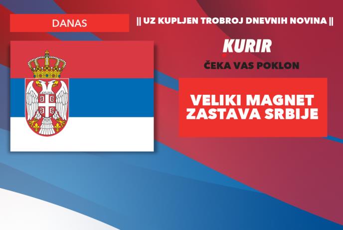Danas uz kupljen trobroj dnevnih novina Kurir dobićete na poklon magnet zastava Srbije, koji s ponosom možete držati na frižideru ili bilo kojoj metalnoj površini.