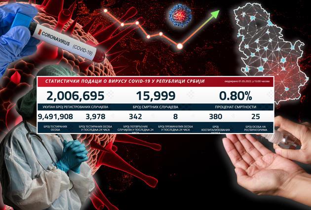U prethodna 24 sata u Srbiji je na korona virus testirano 3.978 građana od kojih je 342 novozaražena.