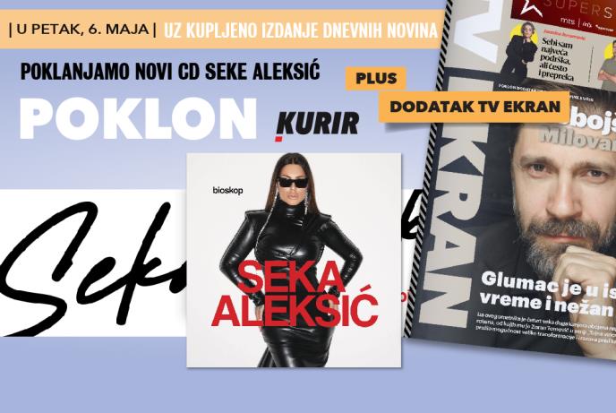 Zato ne propustite u petak, 6. maja, uz kupljeno izdanje dnevnih novina Kurir poklon - novi CD Seke Aleksić pod nazivom “Bioskop”.