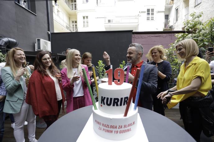 Istog dana u popodnevnim časovima, organizovana je rođendanska proslava za zaposlene povodom 19 godina Kurira. Glavni urednik Aleksandar Đondović obratio se prisutnima i podsetio ih na početke i razvojni put Kurira od štampanog dnevnog lista čiji je prvi broj objavljen 6. maja 2003. godine, do danas, kada je jedan od vodećih medija u zemlji sa najvećom redakcijom na Balkanu.
