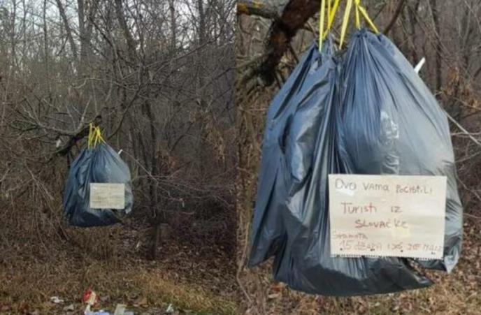 Reč je o turistima iz Slovačke koji su naišli na brdo smeća koje su pokupili u kese. Kako su napisali u jednoj od poruka zalepljenoj na kesi, sakupili su 15 džakova, a i to im je bilo malo.