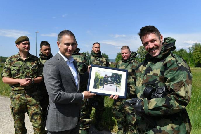 Snimanju su prisustvovali i načelnik Kabineta ministra odbrane pukovnik Stevan Kotarlić i komandant 246. bataljona ABHO potpukovnik Vladimir Filipović.