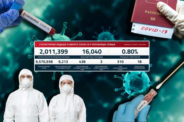 U prethodna 24 sata u Srbiji je na korona virus testirano 9.213 građana od kojih je 438 novozaraženih.