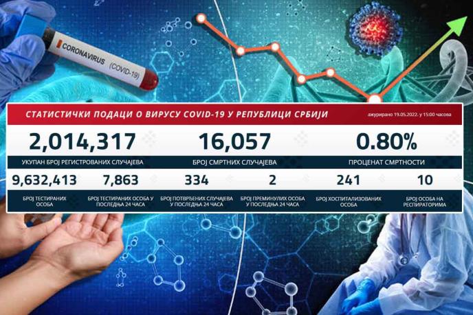 U prethodna 24 sata u Srbiji je na korona virus testirano 7.863 građana od kojih je 334 novozaraženi.