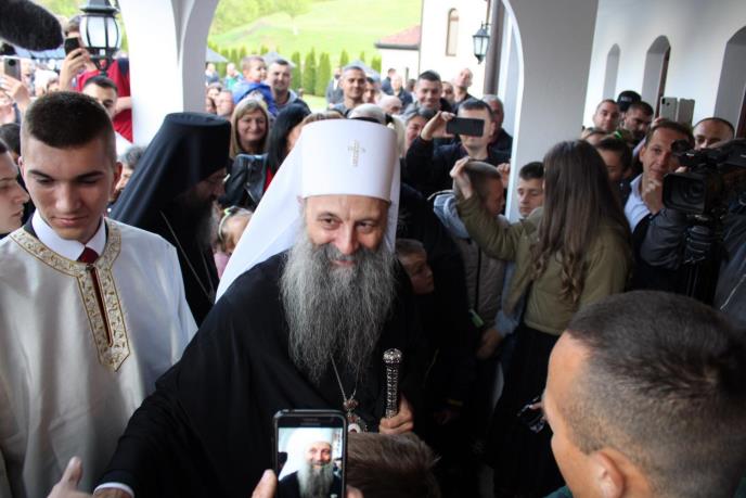 U delegaciji su i mitropolit crnogorsko-primorski Joanikije, episkop sremski Vasilije, episkop bački Irinej, zvorničko-tuzlanski Fotije i kruševački David, prenela je televizija Hram na svom portalu.