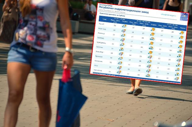U petak sunčano, samo pred kraj dana na jugu i jugoistoku Srbije sa pljuskovima i grmljavinom. Maksimalna temperatura u četvrtak i petak od 28 do 32 stepena. Za vikend promenljivo oblačno i nestabilno sa kišom.Temperatura od 16 do 28 stepeni.