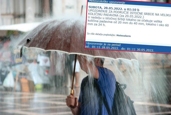 Inače, RHMZ je izdao upozorenje za područje istočne srbije na veliku količinu padavina nedelju. Naime, sutra se istočnoj srbiji lokalno očekuje velika količina padavina od 20 mm do 40 mm, lokalno I oko 60 mm za 24 h.
