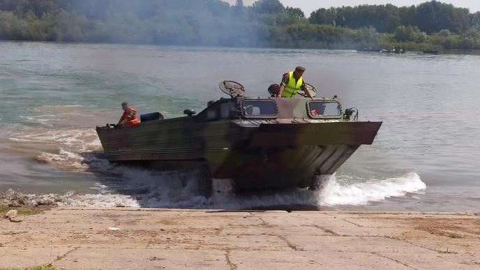 Na privremenom poligonu na Savi vojnici su se u prethodne dve nedelje osposobljavali za savlađivanje vodenih prepreka i obavljanje dužnosti poslužilaca amfibijskog transportera, pontonskog mosta i remorkera.