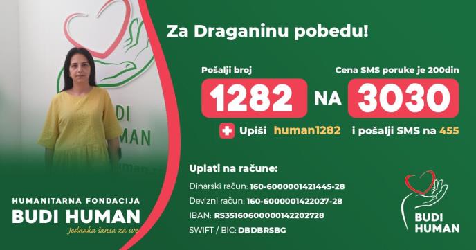Humanitarna fondacija BUDI HUMAN - Aleksandar Šapić prikuplja novčana sredstva za Draganu Petrović (1988)