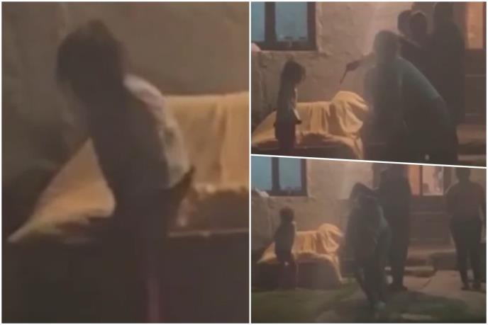 Na snimku se vidi preplašena devojčica, koja plače i vrišti, dok na nju viče i unosi joj se u lice ženska osoba. Pored njih je bilo još nekoliko odraslih ljudi koji su sve posmatrali.