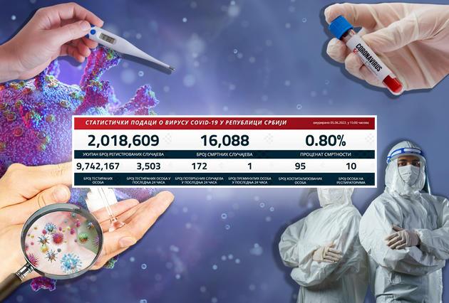 U prethodna 24 sata u Srbiji je na korona virus testirano 3.503 građana od kojih je 172 novozaražena.