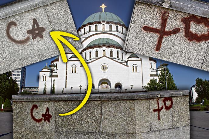 POLUMESEC I ZVEZDA NA HRAMU SVETOG SAVE! Na zidu grafit na kom su simbol islama, ali i krst. POLICIJA OTKRILA KO JE TO URADIO!