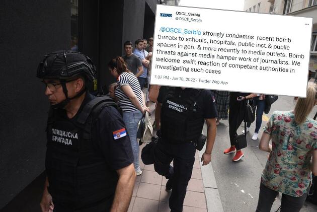 "OSCE Srbija oštro osuđuje nedavne pretnje bombama školama, bolnicama, javnim ustanovama, svim javnim prostorima i odnedavno medijima. Pretnje bombama medijima otežavaju rad novinara. Pozdravljamo brzu reakciju nadležnih organa u istrazi ovakvih slučajeva", kaže se u saopštenju na Tviteru.
