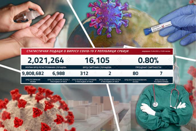 U prethodna 24 sata u Srbiji je na korona virus testirano 6.988 građana od kojih je 312 novozaražena.
