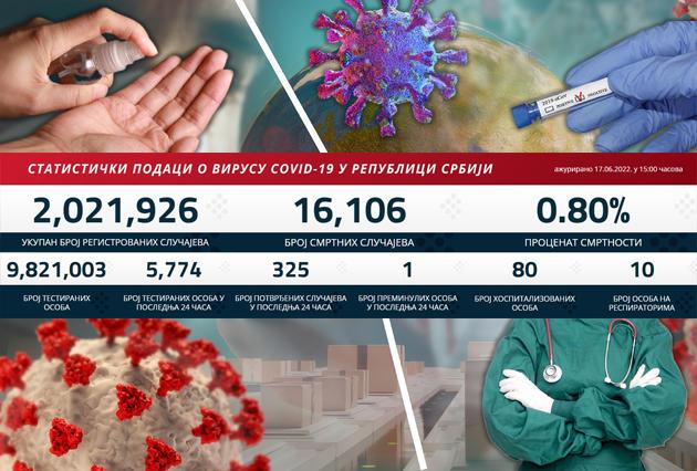Korona virus je u poslednja 24 sata potvrđen kod 325 osoba, preminula je jedna osoba.