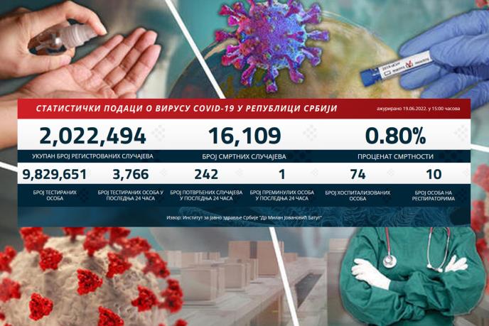 Korona virus je u poslednja 24 sata potvrđen kod 242 osobe, a preminuo je jedan pacijent.