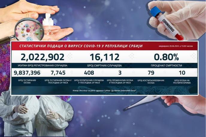 Korona virus je u poslednja 24 sata potvrđen kod 408 osoba, a preminua su tri pacijenta.