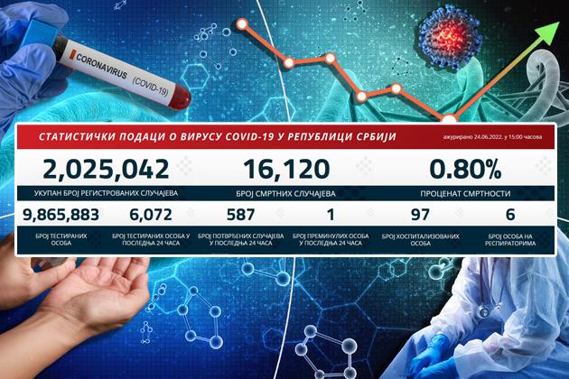 Korona virus je u poslednja 24 sata potvrđen kod 587 osoba, a preminuo je jedan pacijent.
