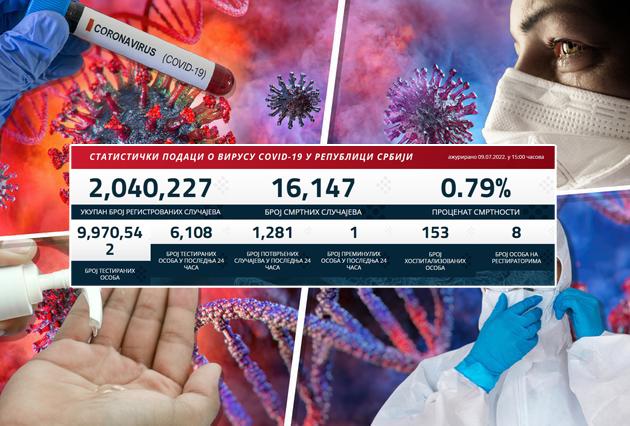 Korona virus je u poslednja 24 sata potvrđen kod 1.281 osobe, a istovremeno je od posledica kovida preminuo jedan pacijent, pokazuje najnoviji korona presek.