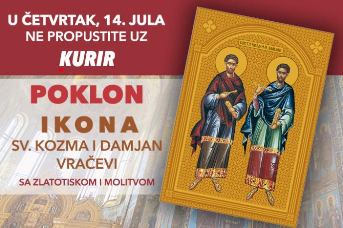 Srpska pravoslavna crkva i njeni vernici u četvrtak, 14.jula, slave Svete mučenike Kozmu i Damjana, poznatije kao Vrači ili Vračevi. U dnevnim novinama Kurir čeka vas POKLON- IKONA SVETOG KOZME I DAMJANA sa zlatotiskom.