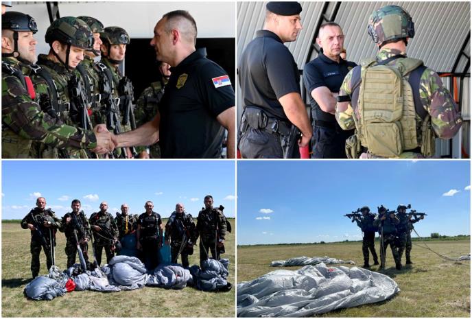 Ministar unutrašnjih poslova Srbije Aleksandar Vulin prisustvovao je danas redovnoj padobranskoj obuci pripadnika Specijalne antiterorističke jedinice u Lisičjem jarku.