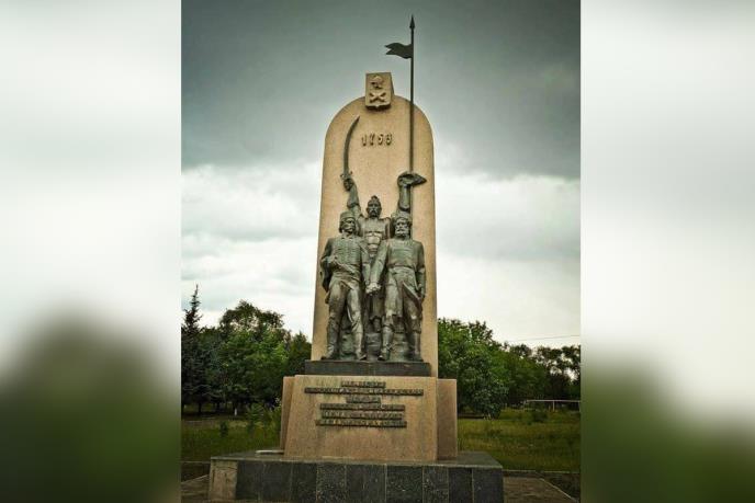 Ovaj spomenik podignut je na 250-godišnjicu od osnivanja Slavjanoserbska 2003. godine (grad osnovan 1753. godine).