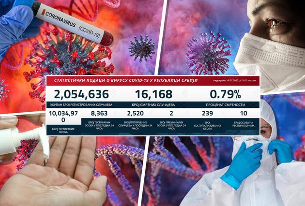 U poslednja 24 sata virusom je u Srbiji zaraženo još 2.520 osoba, pokazuje najnoviji korona presek.