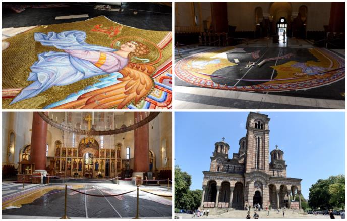 U beogradskoj Crkvi Svetog Marka na Tašmajdanu nastavljeno je uređenje oltara, a grandiozni mozaik Isusa Hrista, površine 100 metara kvadratnih, majstori će, po završetku njegove izrade, postaviti na 30 metara visine.