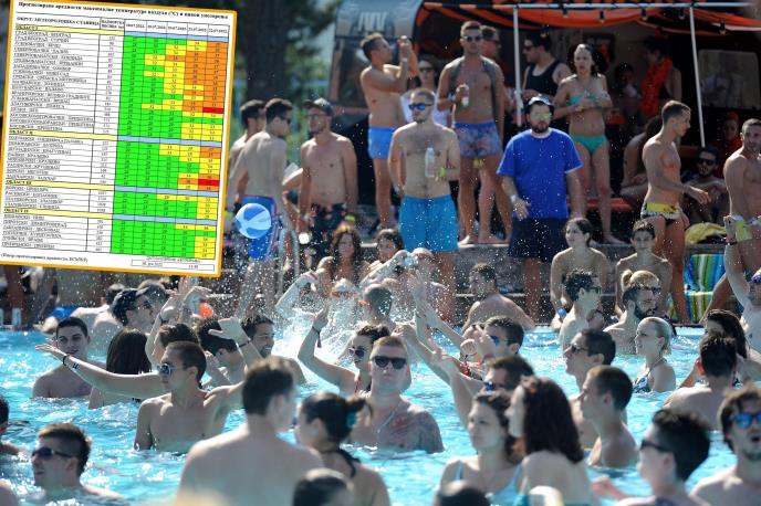 U objavljenoj "Batutovoj" tabeli, najopasnije vreme po zdravlje biće 21. i 22. jula. Tada preovladava narandžast boja, što znači da je pojava opasna, a 22. jula u dva grada - odnosno u Vršcu i Negotinu, biće crveni alarm odnosno veoma opasna pojava.