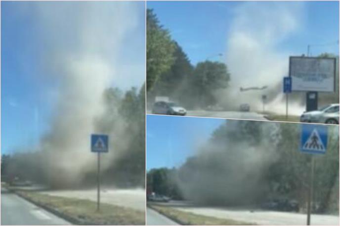 -Stajali smo u blizini i mada zvuči nestvarno pomislili smo da će da odnese i nas i sve oko nas, srećom nije dugo trajalo. Od siline vetra u jednom momentu fromirao se levak od prašine. Posle par minuta, kao da ništa nije bilo, svedoče.