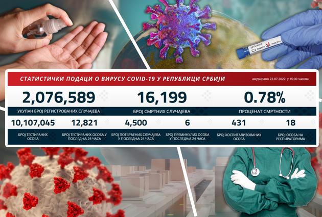 U Srbiji je u poslednja 24 sata zabeleženo 4.500 novozaraženih korona virusom, a testiran je 12.821 uzorak.