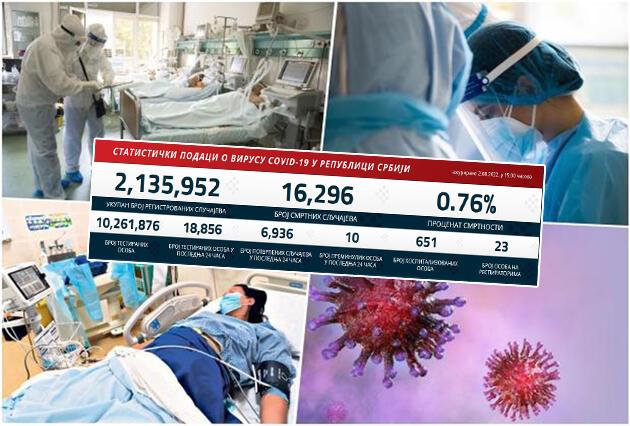 U protekla 24 časa u Srbiji je koronom zaraženo još 6.936 osoba, a preminulo je 10 ljudi. Testirano je 18.856 osoba, a na respiratorima su 23 pacijenta.