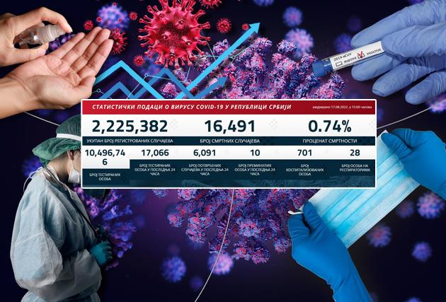 U poslednja 24 sata korona virus u Srbiji potvrđen je kod 6,091 osoba, a od posledica ove bolesti preminulo 10 pacijenata.
